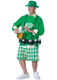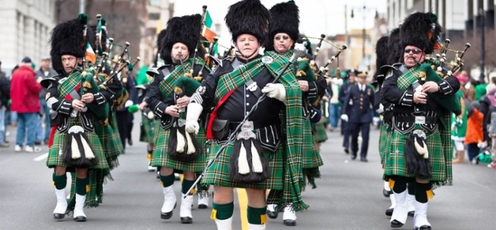 - The second set expressed the brightness of the Irish. Throwing aside the pants, the men wore kilta skirts, the design of which was made in a checkered or striped ornament. The combination of green and orange shades demonstrated the individuality of the people of Ireland. In such clothes the Irish preferred to visit pubs.