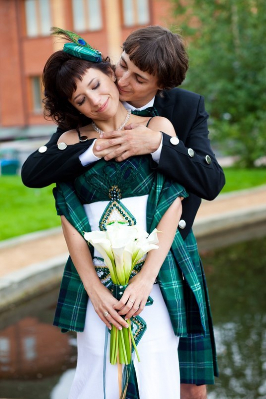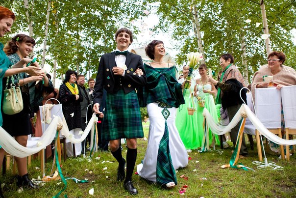 Fans of themed parties will love the idea of having a wedding (or any holiday) in Irish style. In honor of such events, men return to the origins of the culture of Ireland and wear skirts.