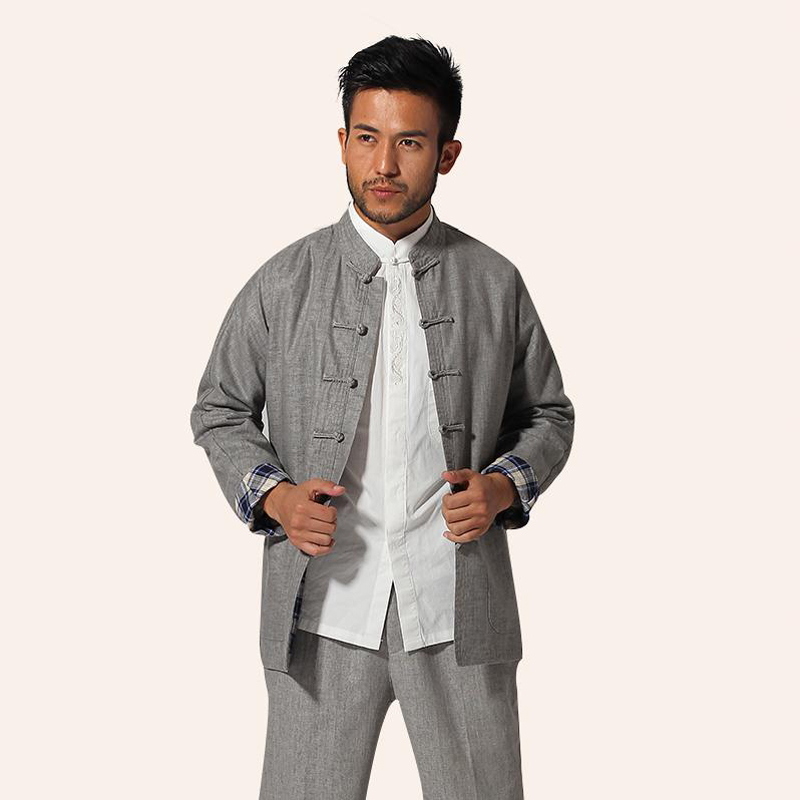 The demi-season version of the classic suit of Chinese men is complemented by one particular element. Lightweight jacket plus insulated tank top or jacket with a lining. Underwear remains the same as in summer.