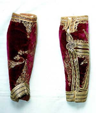 For special occasions, as a decoration, a specially designed apron, embroidered with decorative stones and adorned with bright shiny embroidery that looked out from under the dress, was tied onto the thigh section.