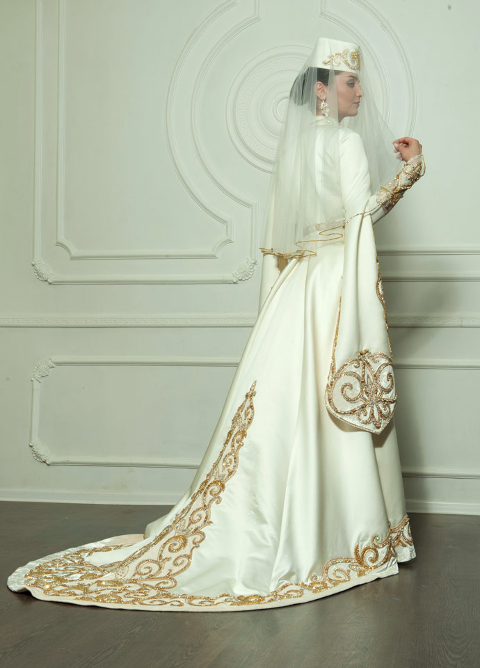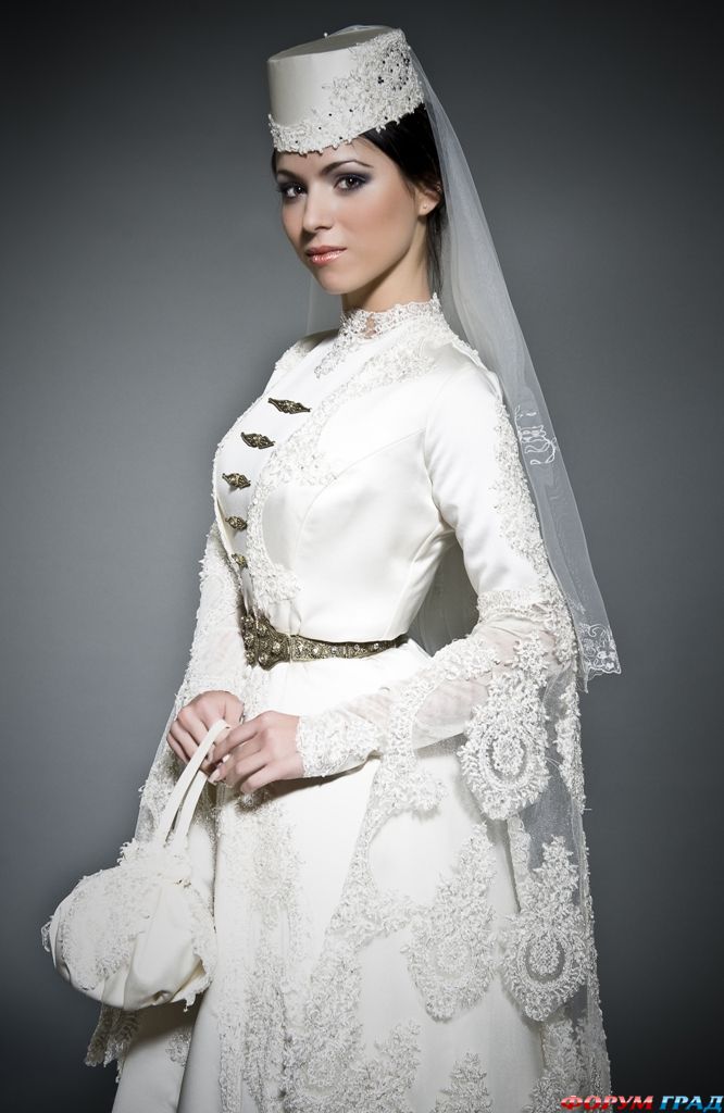 Women's wedding dress is made in compliance with all possible traditions, emphasizing the honor and chastity of female nature peculiar to this people.