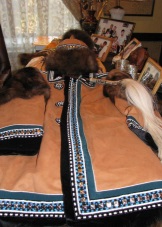 - onolokh, buktaah. The Yakut craftsmen, without undue embarrassment, laid the basis of this type of tailoring, especially the tailoring of clothes for the Russian military and avid travelers. Of course, it was not without purely national inclusions. The name of such a cut is due to the presence of folds on the back - “ito” and the original model of the sleeve - “buuk” (buffoon). Outerwear (usually a coat), sewn according to this principle, was worn equally by both men and women. The main materials for the manufacture of the Yakut national costumes of this cut were: leather and dub (Chinese paper fabric) - for men; fur and suede (depending on the season) - for women. Velvet stripes on the collar and cuffs served as trim;