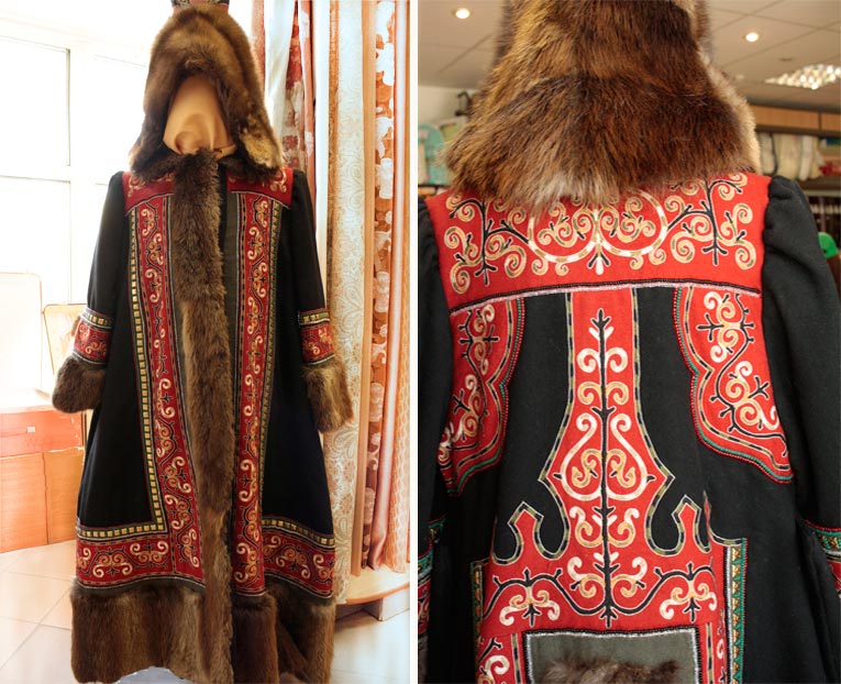 - outerwear - fur, suede with skillful addition of pieces of silk or fur national ornaments.