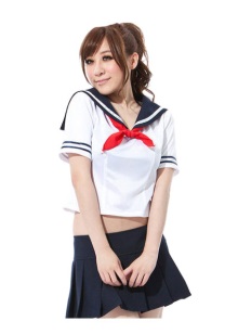 - The sailor suit consists of a jacket and a pleated skirt. Blouse decorated with a collar in a marine style. On the blouse there is a loop for the red ribbon, which the schoolgirls, if desired, replace with ties, butterflies and bows.