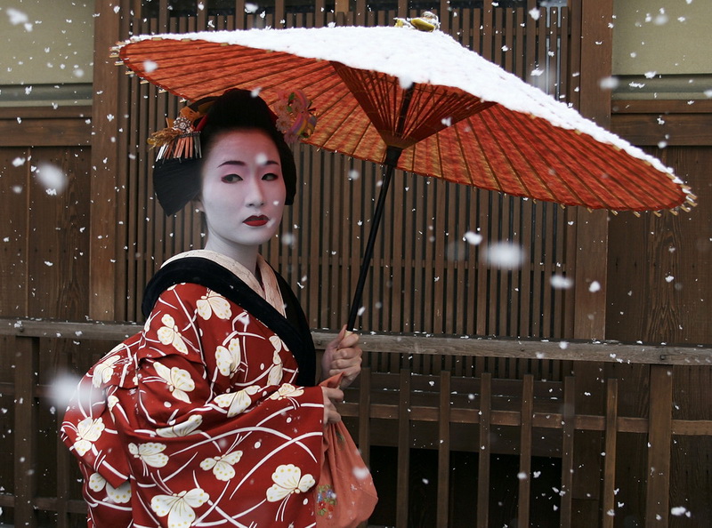 There have always been seasonal trends. In the fall, the girls wore kimono with V-sheet patterns, in the spring pink sakura flowers bloomed on the fabric, and with the onset of winter, clothing was decorated with delicate needles of pine matzoh.