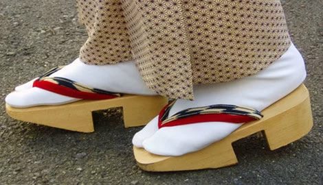- Geta could afford the wealthy Japanese and professional geisha. Geta is divided into two variations. The first model is equipped with a large wooden block with a notch in the bottom. The second is a wooden bench. The highest platform geta reaches as much as ten centimeters. Shoe laces are fixed between the index finger and thumb, holding the leg firmly.