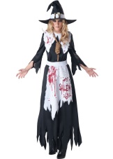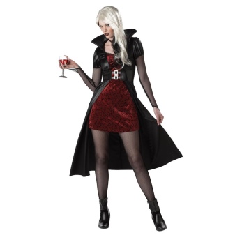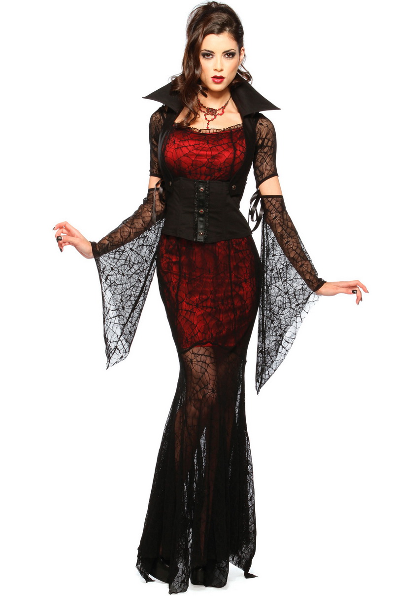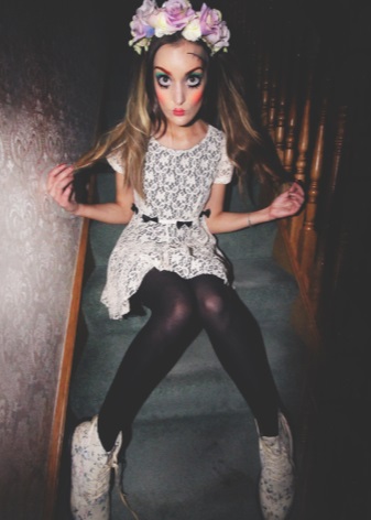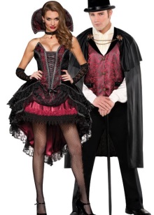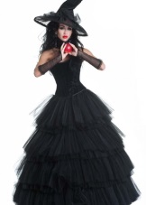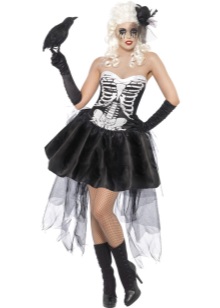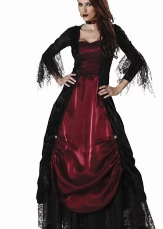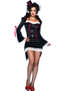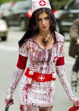 If you want to impress the male half of the party, you can try to shorten the costume yourself, leaving the uneven ends of the dress. The image can be supplemented with specially torn stockings, high heels and a weighty chain with a cross on the neck. Make-up can be made quite aggressive: “blood” stains, dark circles under the eyes, defiantly red lips. Or, on the contrary, more modest, adding only false eyelashes, dark lipstick and black lenses.