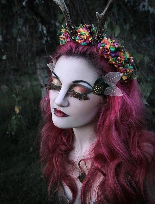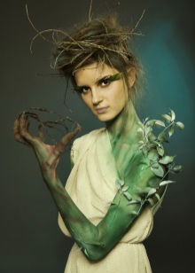 There will be no special problems to create more interesting images with the help of flying fabrics and makeup paints. It may be an evil spirit or a siren. The most popular recently are the images, where with the help of glue and dye from the girl's hair are created interesting compositions in the form of imitation horns or tree branches.