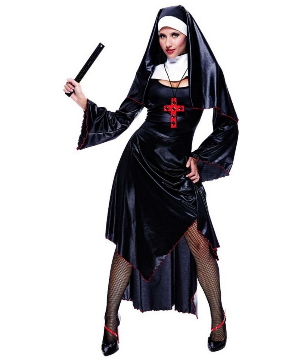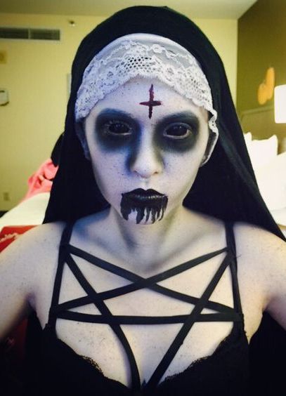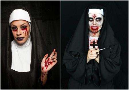 There are quite a few options in creating an intimidating costume with the help of this image. You should get a special nun attire in advance, which can be purchased at the store or ordered for a more affordable price via the Internet. Take care of this in advance.