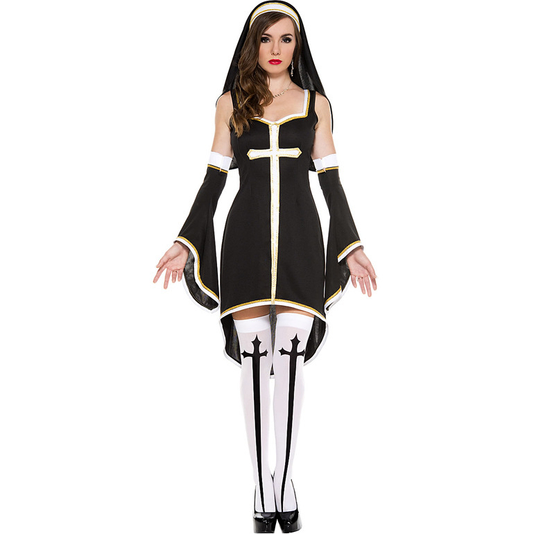 The nun has always been the personification of innocence and kindness, which is why many invited to the Halloween party may seem rather unusual costume of a nun, complemented by spectacular details in the form of black lenses, simulated cola in the chest or artificial blood on the dress.