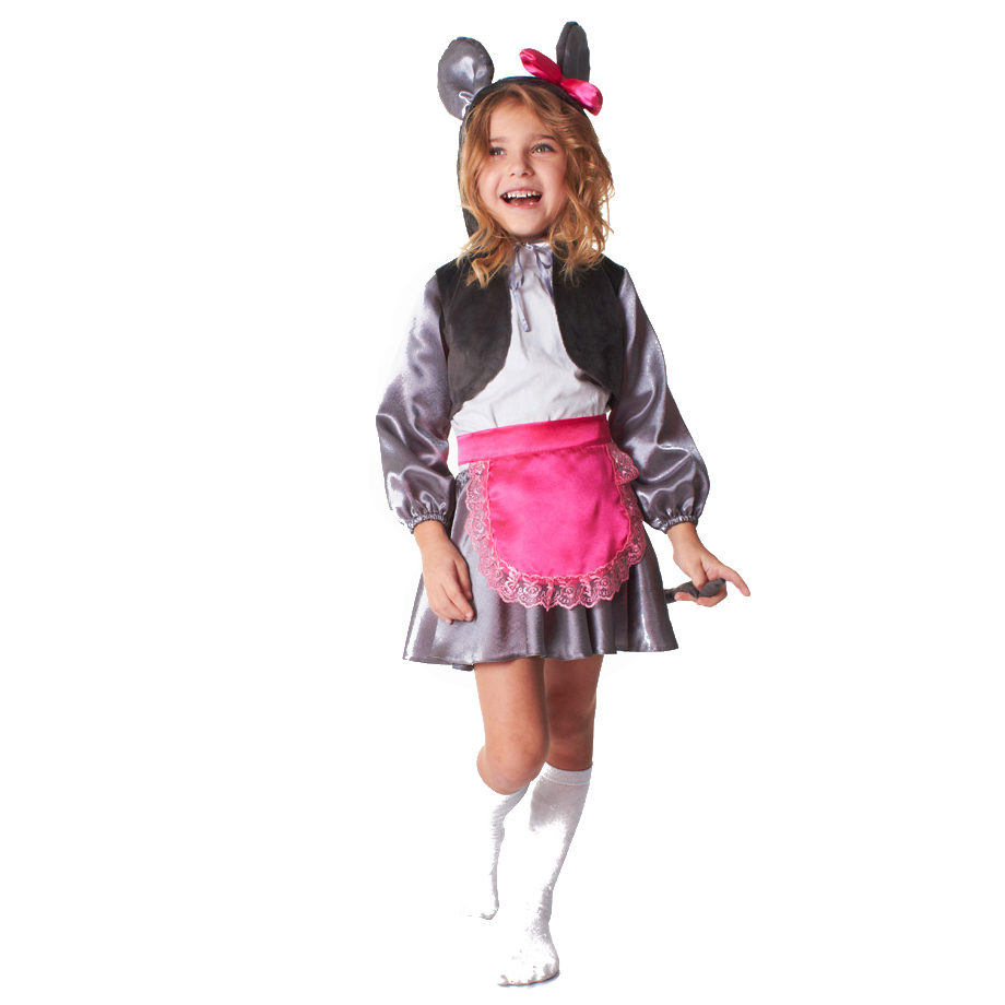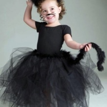 - A great outfit for the little ones is a black fluffy little mouse. The ears attached to the rim and the tail on the strap are made of fur material, and the appearance of fluffy wool is created thanks to a voluminous puffy skirt.