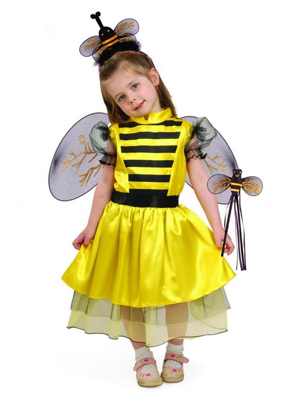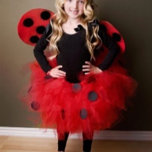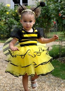 Girls of this age can also dress up in animals, as well as kids. The costume of a squirrel with a fluffy tail and sly eyes, mice with large round ears, a yellow chicken or a hard-working bee with a sharp sting will look great.