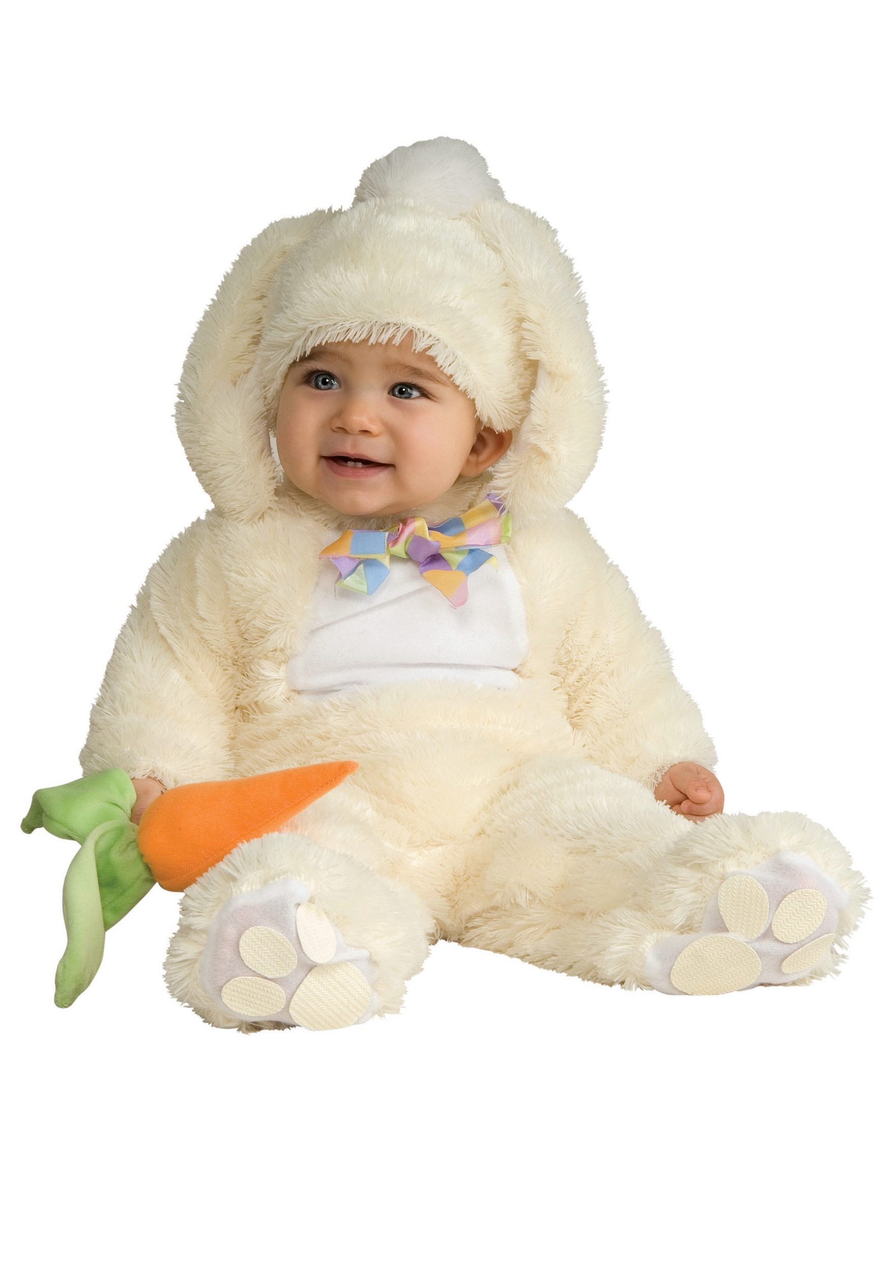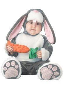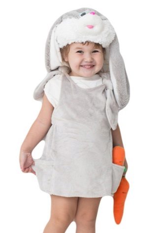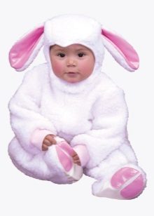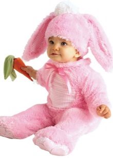 For the smallest girls is fine costume - bunny romper. Big ears, pretty heels on legs, soft tum - all you need is for the baby to be fun, and most importantly, warm and comfortable. Color options may be different. Bunny with a gray or white skin, or a fabulous baby in a pink suit.