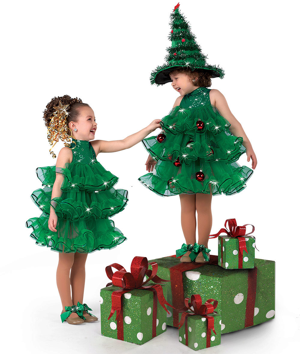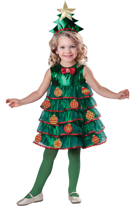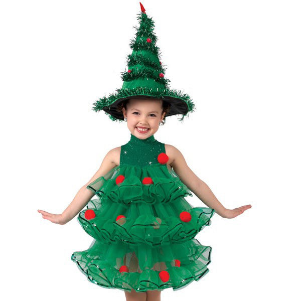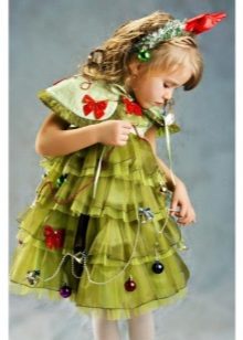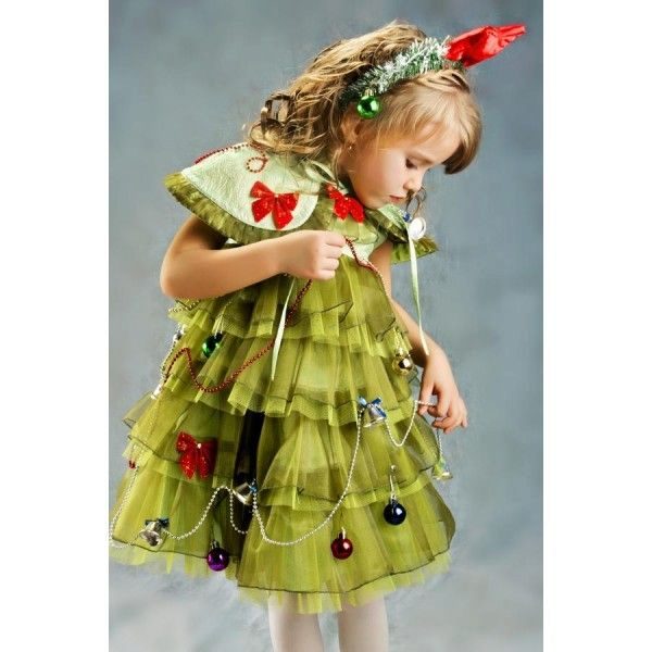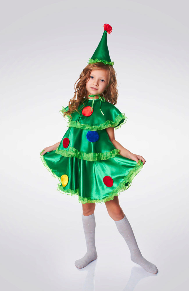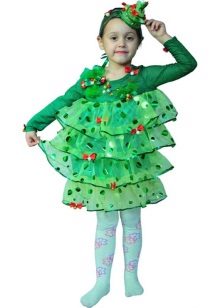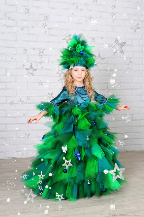 And, of course, the girl will be delighted with the costume of the elegant beauty with lush green branches. Therefore, you can safely buy Christmas tree costume for your daughter. Usually this outfit is presented in the form of a lush multi-layered dress of green color, decorated with geometric shapes of different colors, as well as a pointed headdress.