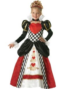 You can help the girl make a simple suit in retro style by adding an extra pad to her favorite dress to create more pomp, as well as using large beads and glasses, and elongated gloves.