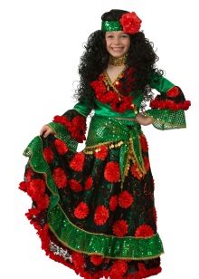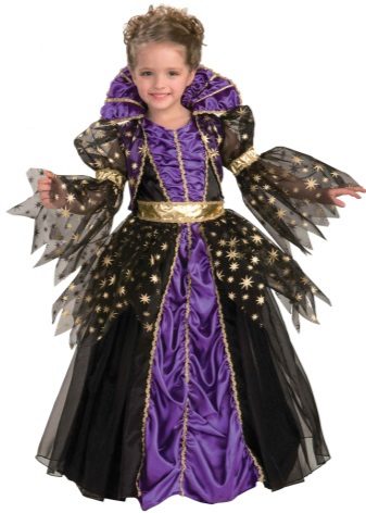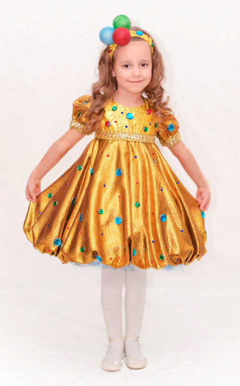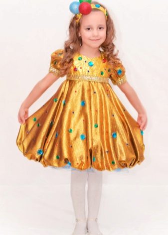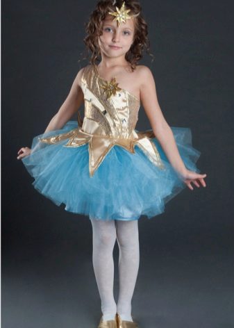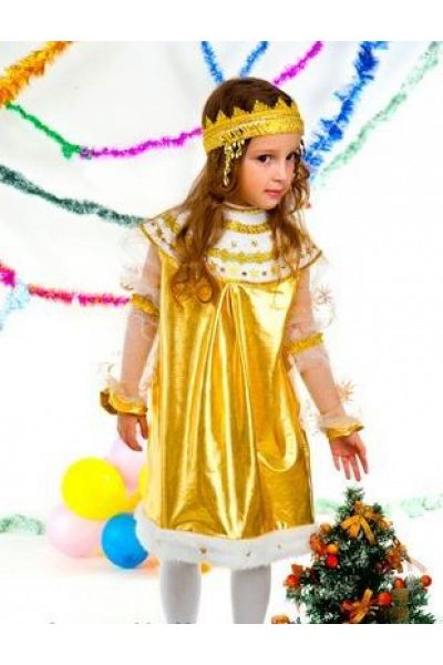 It will look great star costume. A magnificent golden dress with large rhinestones will not leave anyone indifferent. The dress can also have a silvery coloring and absolutely must be complemented by beautiful shoes of the corresponding shade.