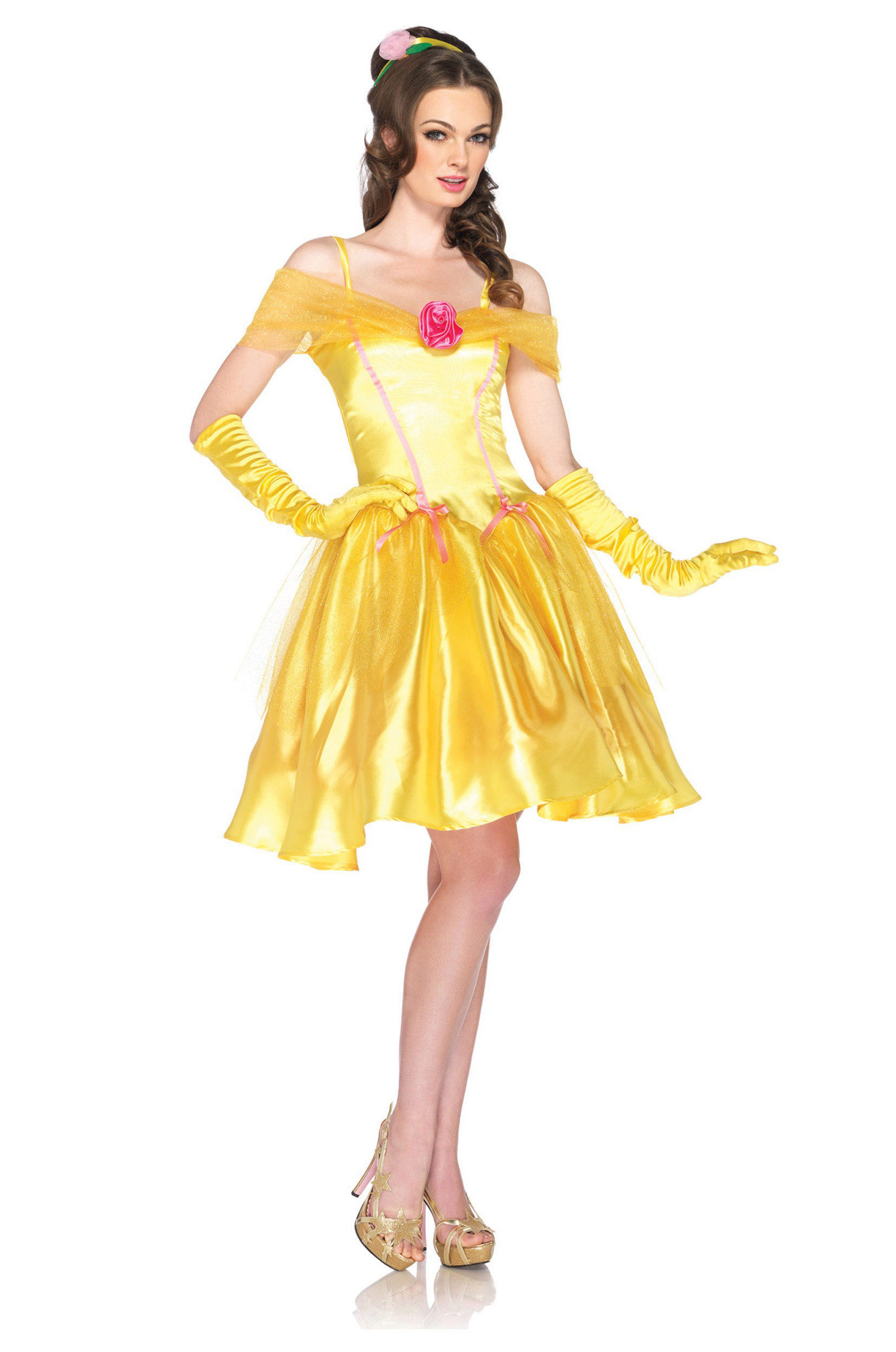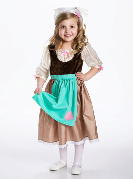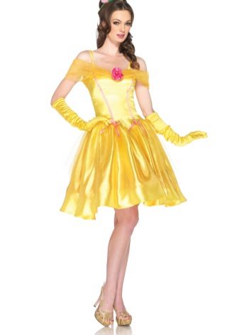 Beauty Belle from the cartoon "Beauty and the Beast" would be a great way for a perky little girl with brown hair. The lush yellow dress and elegant hairstyle in the style of the heroine will look great, and in addition to the dress you can take a large scarlet rose, which was a symbol of the monster's life force.