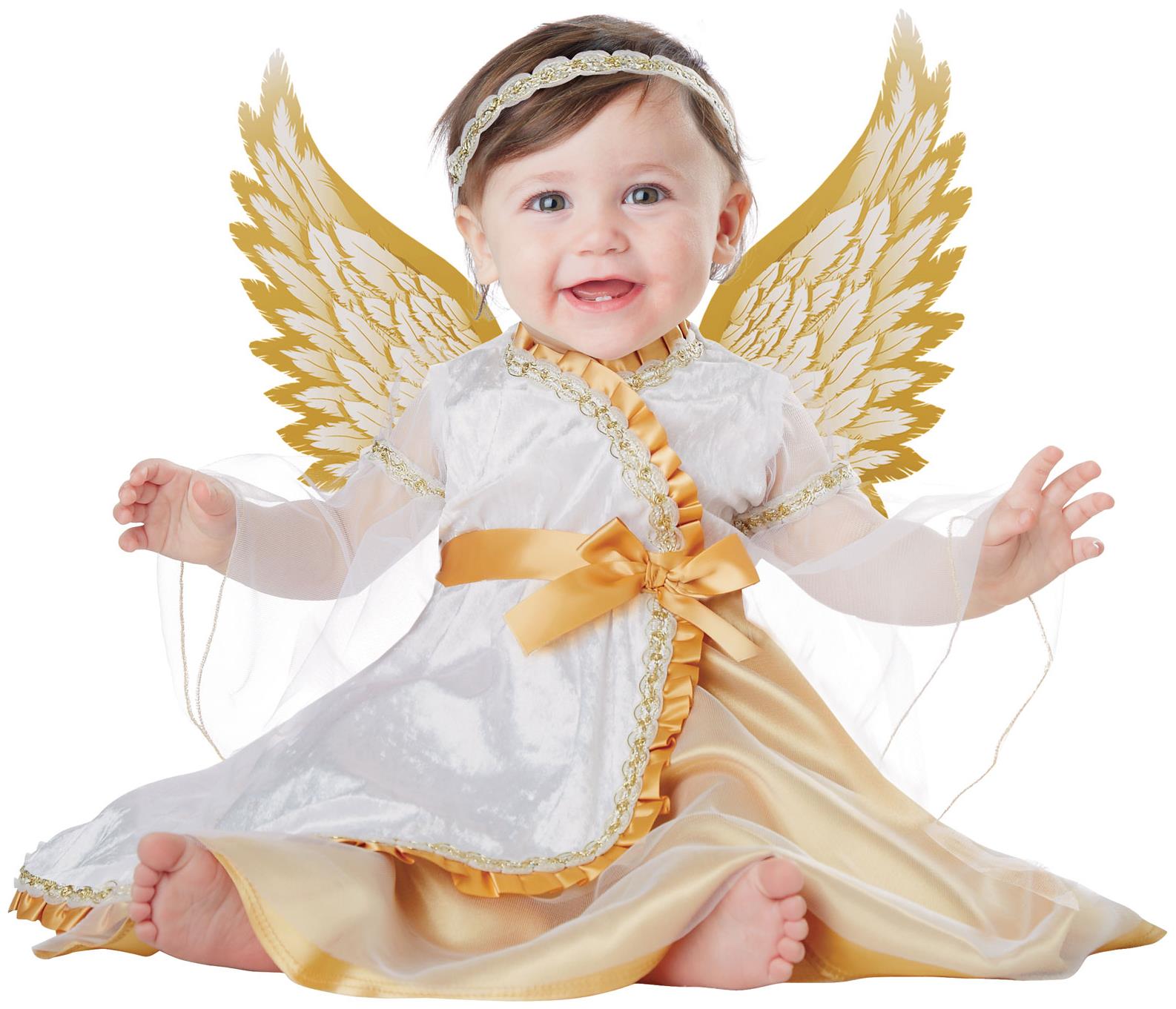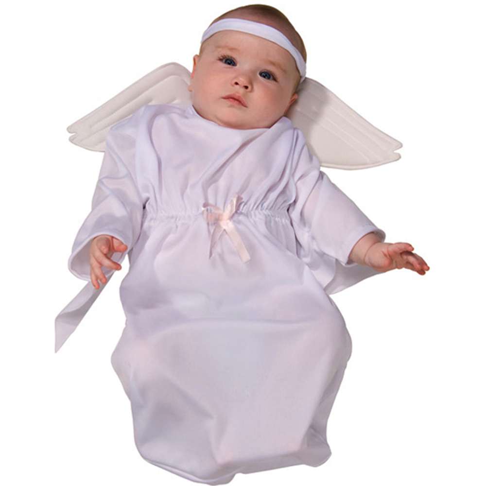 Baby can also be dressed up in angel costume with a snow-white dress and gentle wings. You can use the purchased ones or build them yourself using thin lace or any white mesh fabric, wire, swan's down or boa.