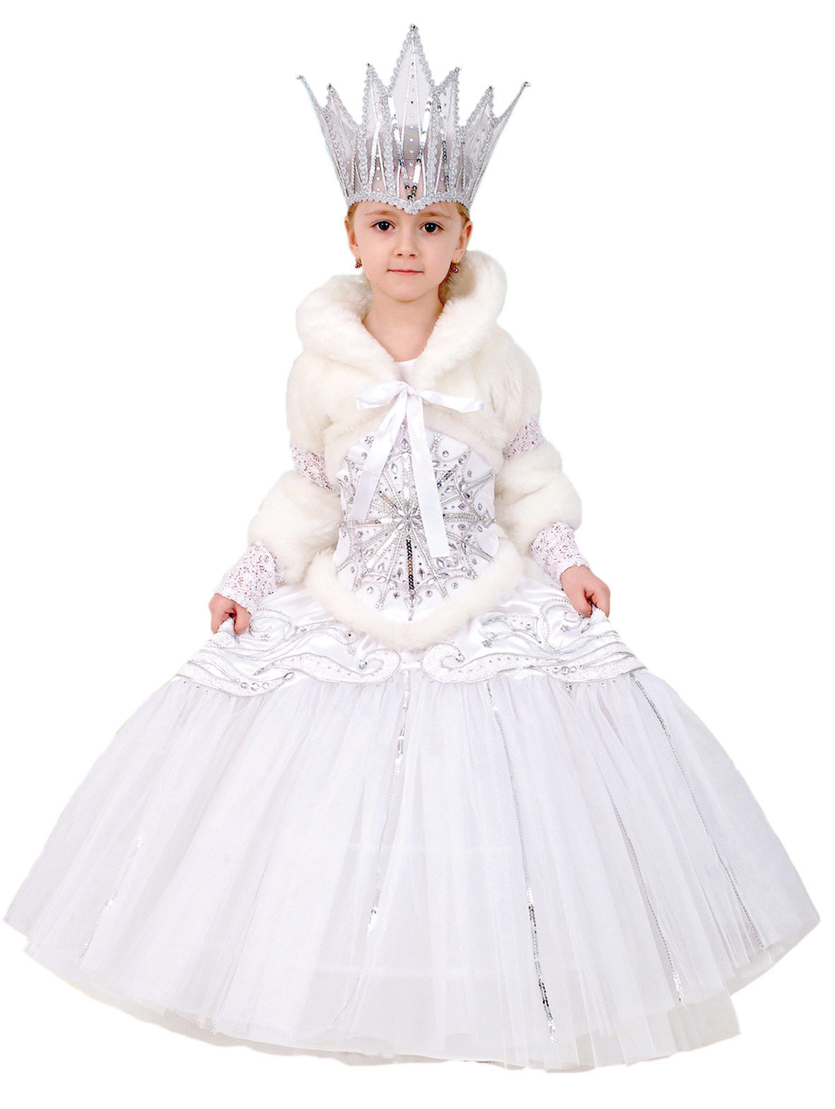 - The snow-white suit of the Snow Queen looks just great, so it will surely create a sensation, and the silver crown and lush cut of the dress will delight any girl.