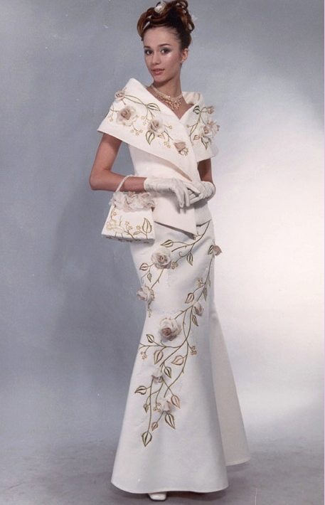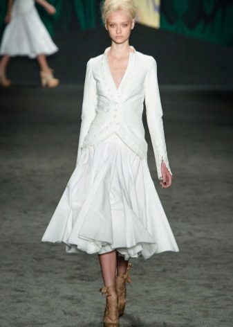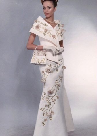 An incredibly luxurious and feminine combination: a skirt-year and an elegant jacket. The dress can be decorated with a beautiful floral ornament or remain snow-white. Any image will look just amazing!