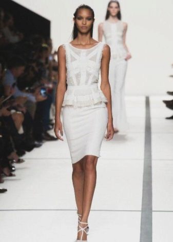 This kit opens up a huge field for designer imagination. Any style, length, style, decor. The main thing is that both parts of the kit should be perfectly combined with each other. If the choice of style is difficult, a proven classic will always come to the rescue: a medium-length pencil-skirt effectively emphasizes the rounded hips and slender legs.