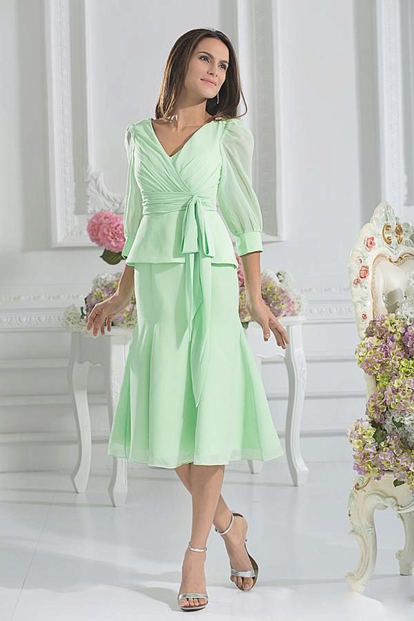 Long sleeves will hide not too slender arms, shortened or ¾ will emphasize their harmony.