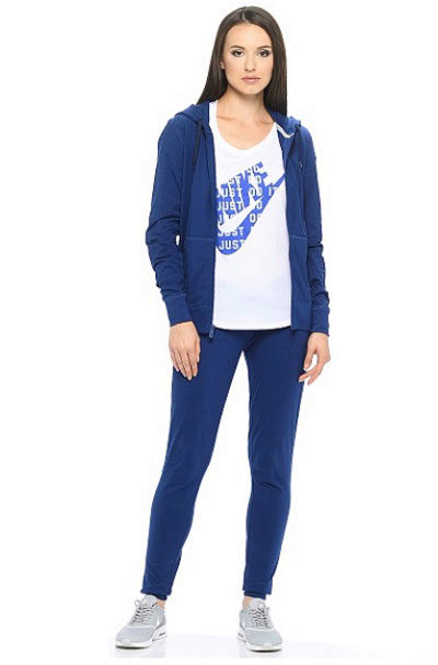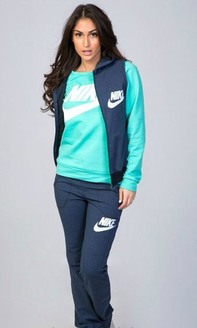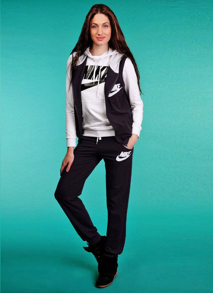 Girls, wearing a Nike tracksuit, above all, strive to look stylish. This is easily achieved in the clothes of this brand. However, the fashionista should take into account one important point - the top and bottom of the set should be balanced. For example, if you are wearing a bulky sweatshirt or vest, then in the role of the bottom it is desirable to choose leggings in tight. Conversely, free sports pants will look harmonious with a fitted top.