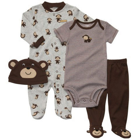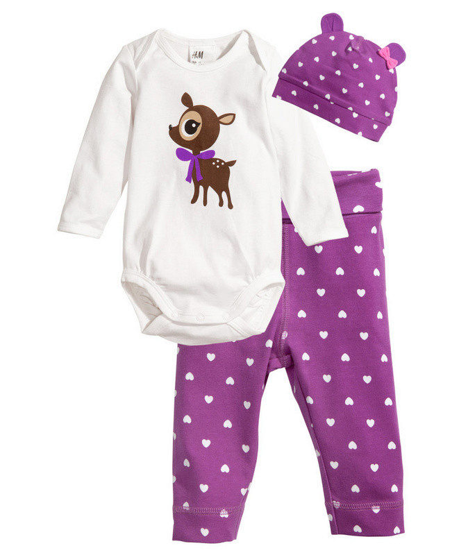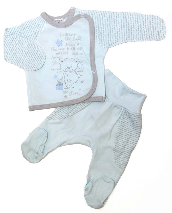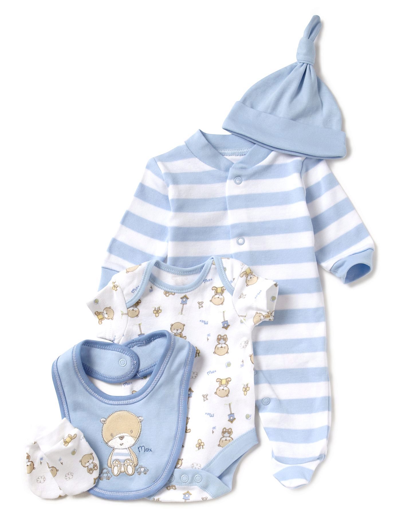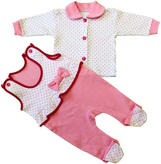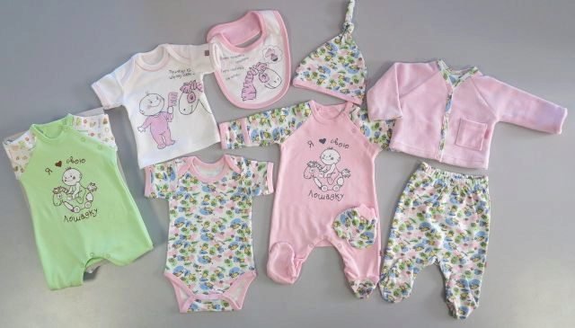 A baby kit contains several items. Often it is 3-4 items of clothing, but sometimes more. Usually the costume includes top and bottom. It should be noted that all components of the costume are made in the same style and in similar colors. Clothing for children of the first year of life should be made of natural breathable fabrics.