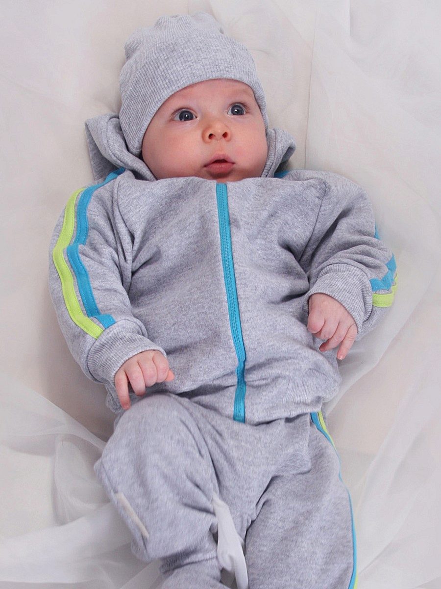 Some parents practically from the cradle teach the child to sport. It was for them that the manufacturers produced tracksuits for babies. They are made of cotton breathable multi-colored materials.