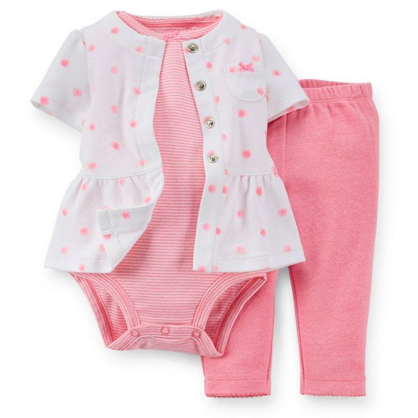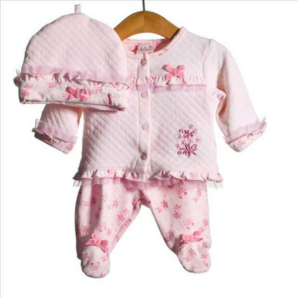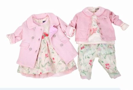 Wardrobe for babies is characterized by pale pink hues, patterns with flowers, baby dolls or cute little animals.