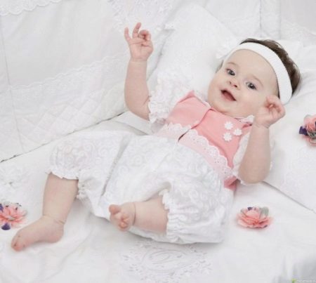 If you expect replenishment in late spring or summer, give preference to clothing made from light, thin and soft fabrics. Summer suits are very cute. Often they are decorated with embroidery, various applications and inscriptions.