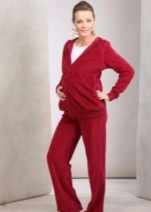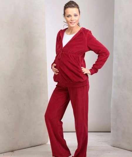 Velor perfectly keeps its shape, perfectly sits on the figure, just take care of it, it does not cause allergies and gives only comfortable sensations. And these are the main requirements for clothes for expectant mothers.