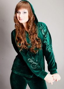 Velor - quite versatile material. Velor suit allows you to gently hide some figure flaws and perfectly highlight its dignity.