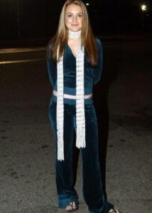 It is not necessary to wear the entire suit, pants and jacket can be perfectly combined with other items of clothing. For example, a beautiful velor jacket can be worn to jeans or a skirt. And velor pants are perfectly combined with monophonic or colored T-shirts, smooth tops, T-shirts, etc.