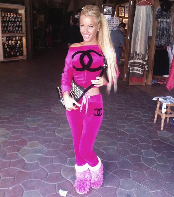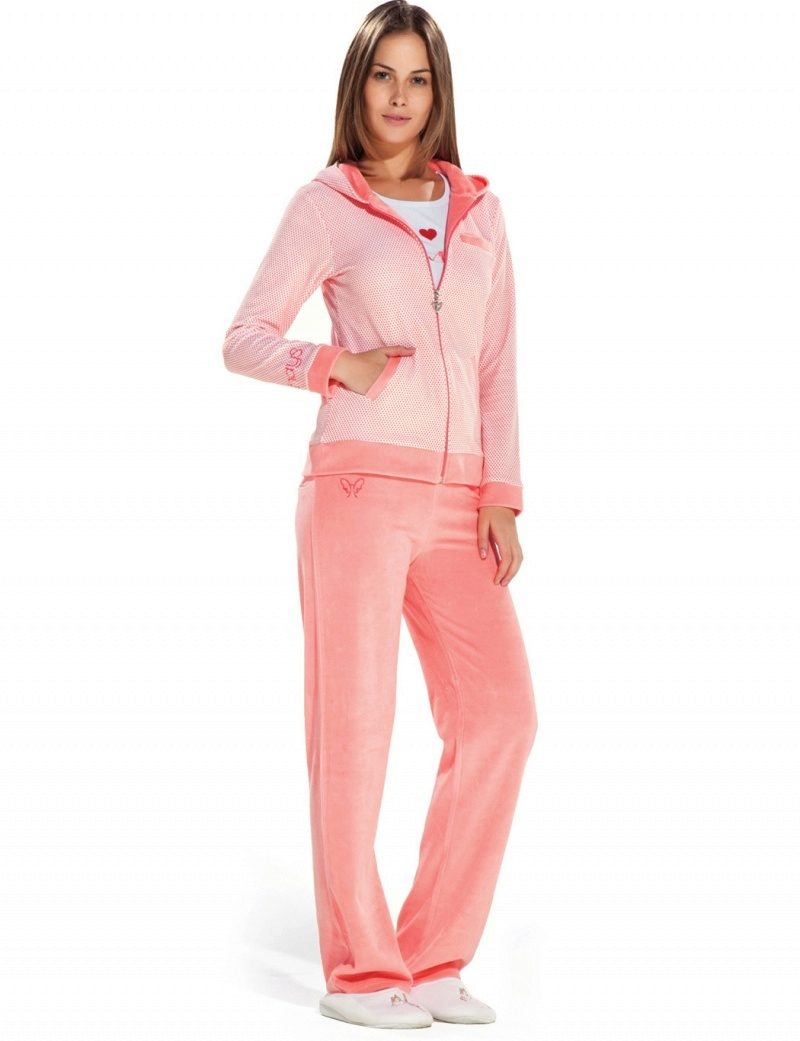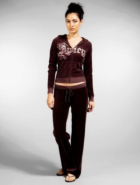 American brand Juicy Couture offers stylish and trendy clothes for confident people. The velor costumes made in gentle caramel tones became a real hit of the new season. Juicy, rich and delicate pastel shades, bright inscriptions, original prints and a huge selection made the products of this brand multi-popular among women of different ages.