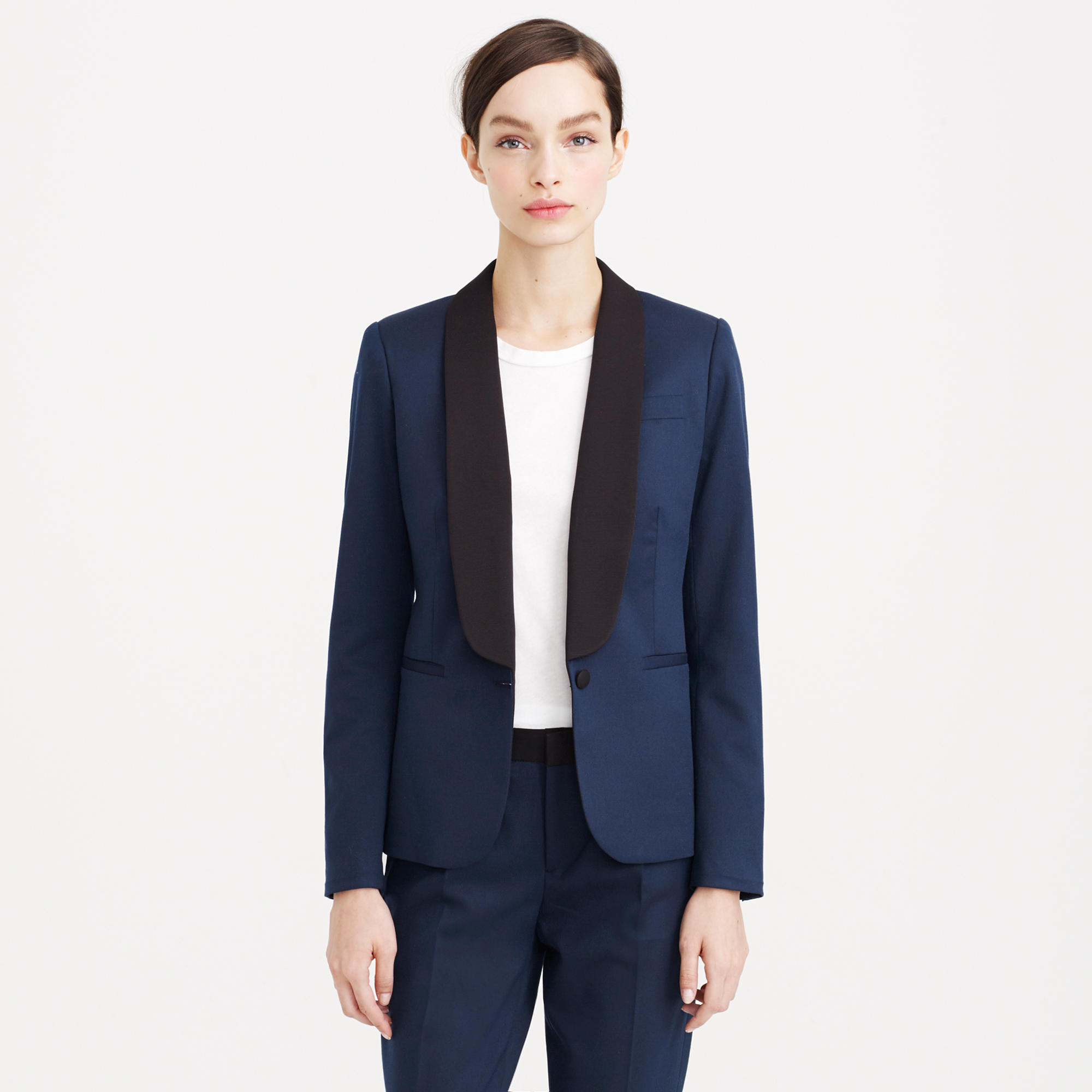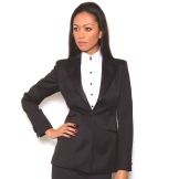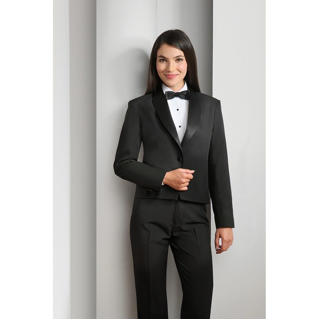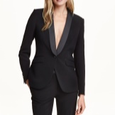 - The tuxedo. Evening jacket with a deep neckline, opening the chest. The only jacket in the women's wardrobe, which is usually worn on a naked body. It can also be combined with a silk top or with a white shirt and with a tie or bow tie.