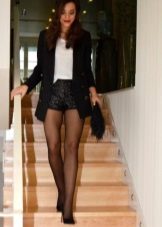 This suit can be easily entered into the business wardrobe, of course, if the dress code allows. In the office, bermuda shorts, capris, as well as models with breeches will be appropriate. This is an excellent solution for the summer season, but with the onset of autumn, you should also not write off such sets from the accounts. Shorts look amazing with tight tights muted shades.