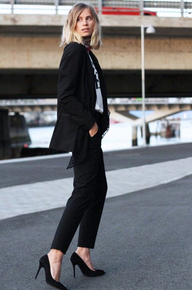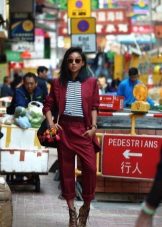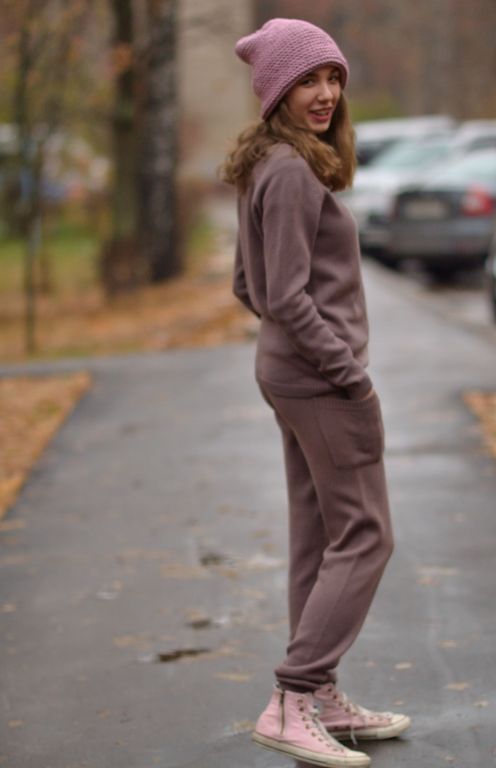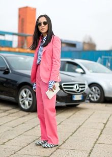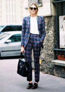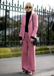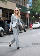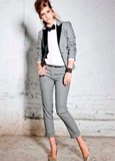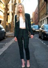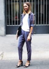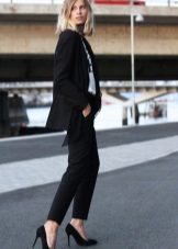 In everyday wardrobe all options will be good. The suit is combined with any turtlenecks, T-shirts and sweaters. Shoes with or without heels can complement the image - sneakers, loafers, slip-ons, sneakers.