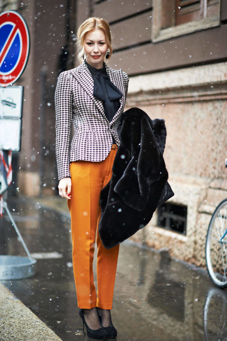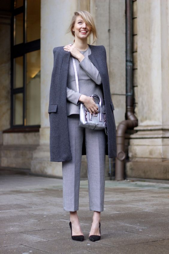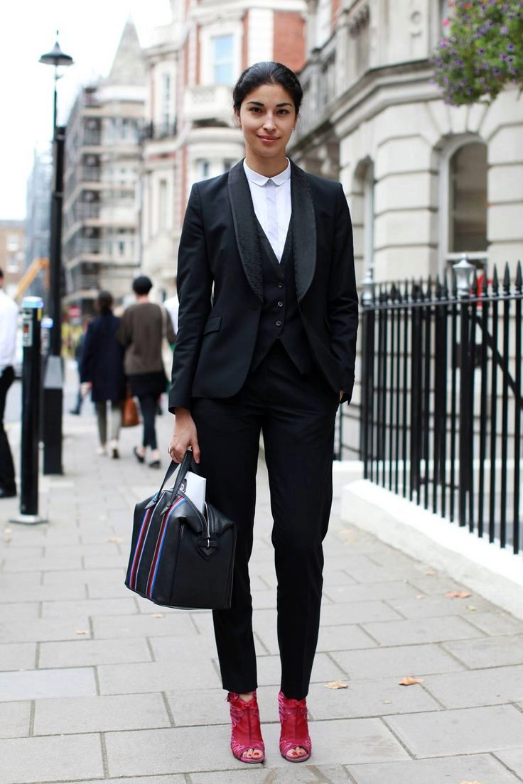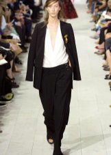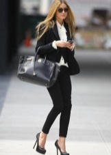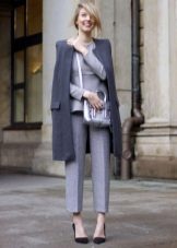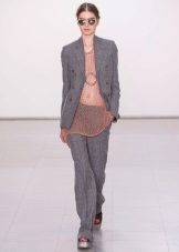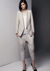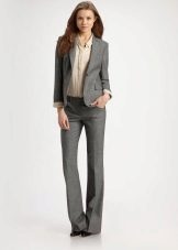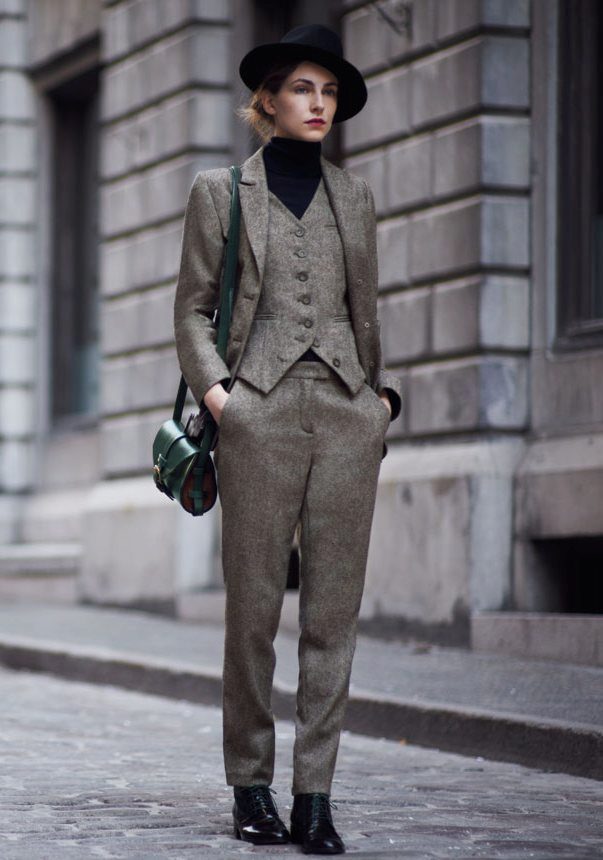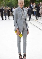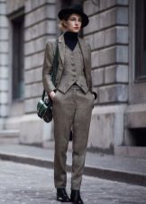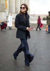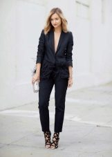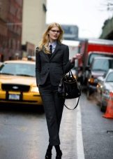 If you choose a trouser suit, give preference to a jacket in men's style. The pants should fit perfectly on you, the length should be matched to the heel. Pay attention to the models from tweed, they are warm enough, but it will not be cold in them.
