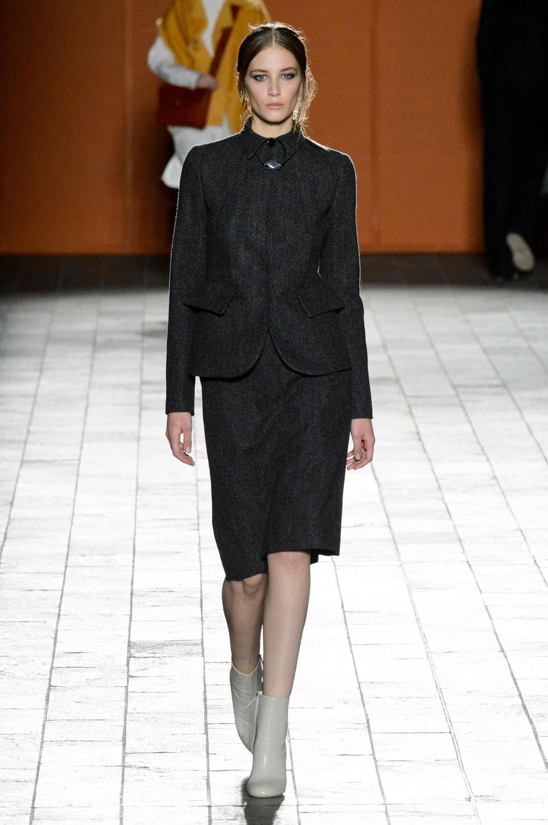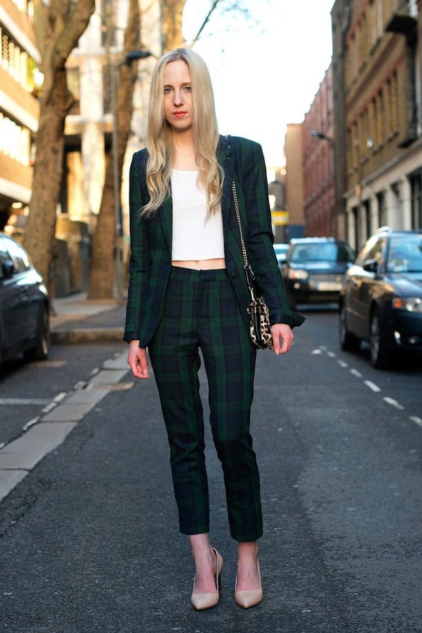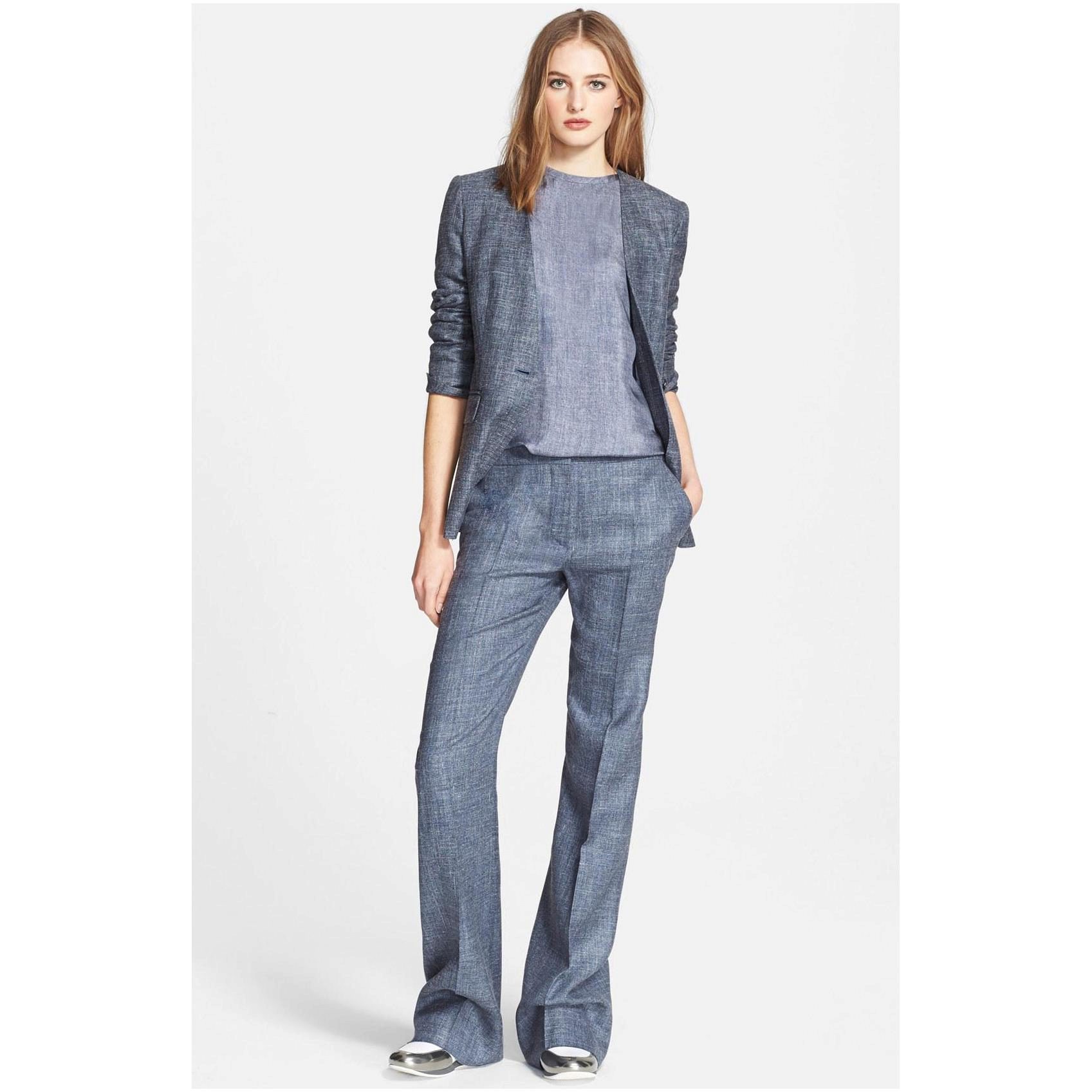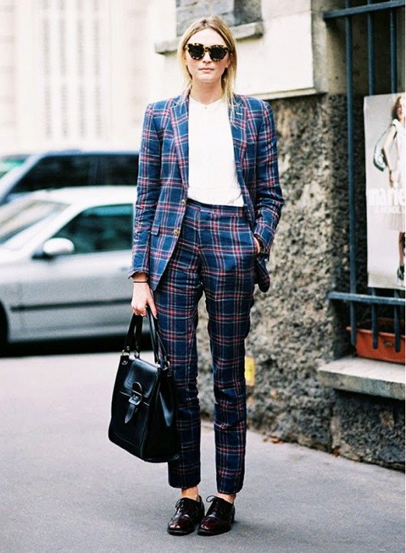 If you choose a trouser suit, give preference to a jacket in men's style. The pants should fit perfectly on you, the length should be matched to the heel. Pay attention to the models from tweed, they are warm enough, but it will not be cold in them.