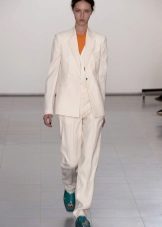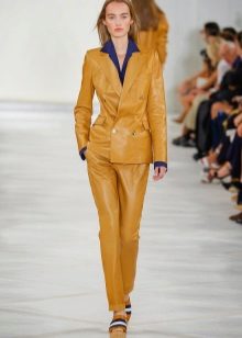 Suits made of leather and suede are back in fashion. Business style models and more relaxed sports styles are popular.Classic jackets look spectacular with wide trousers and short shorts. Such sets can be entered into a business dress code or successfully complement the image in the style of street style.