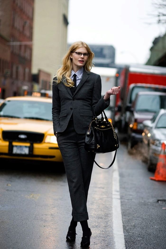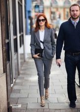 All tight and baggy styles are eliminated, the costume must be matched exactly on the figure. Forget about sexy seductive outfits, artificial materials. Prefer wool, tvidu, cotton and silk. The color scheme is also restrained and concise, but this does not mean that your image should be faceless. Gray or beige suit can be supplemented with a blue shirt or yellow scarf, or red accessories.