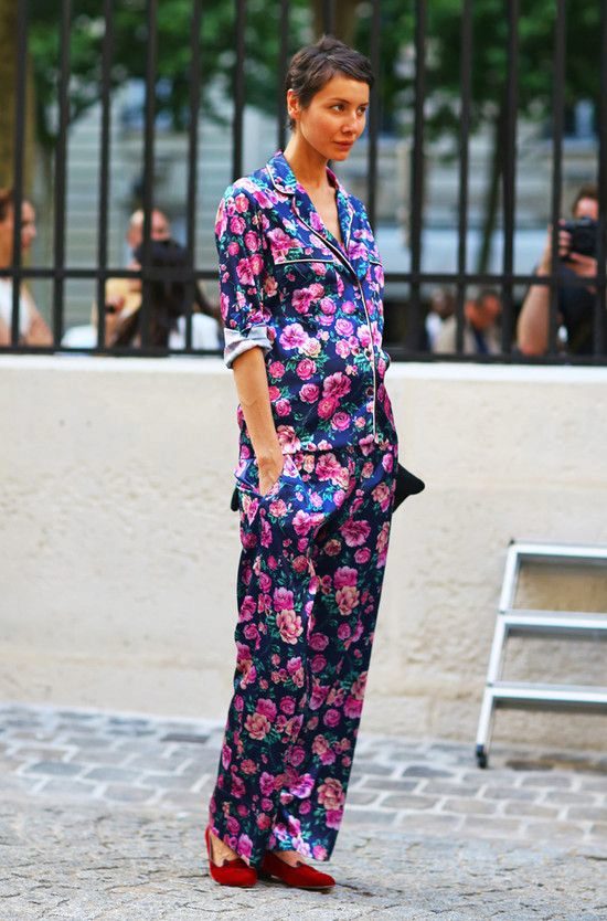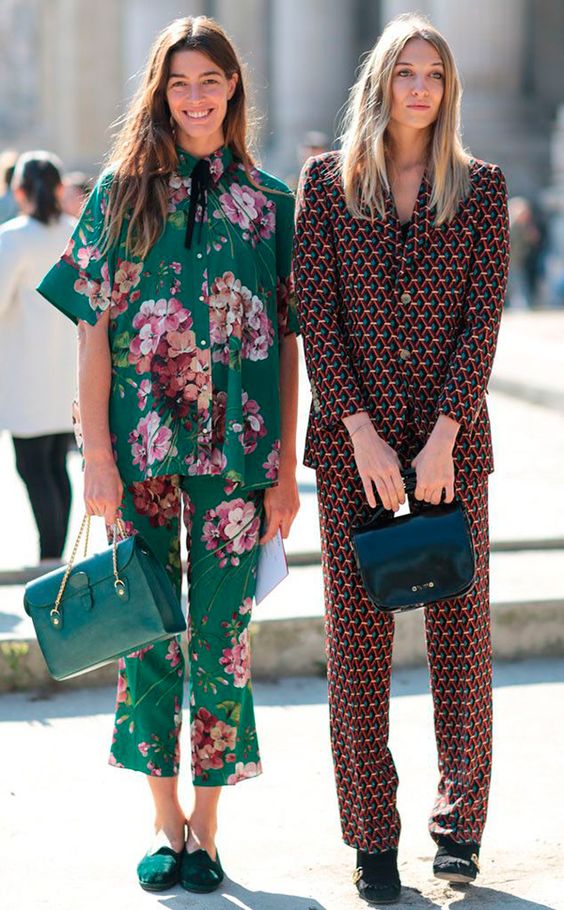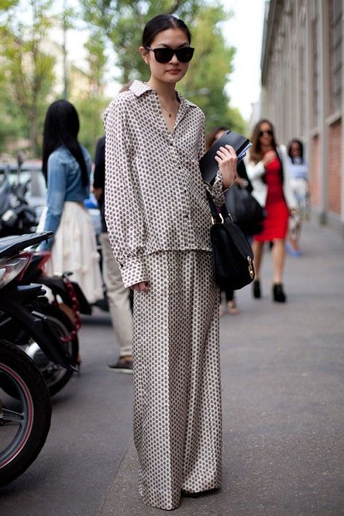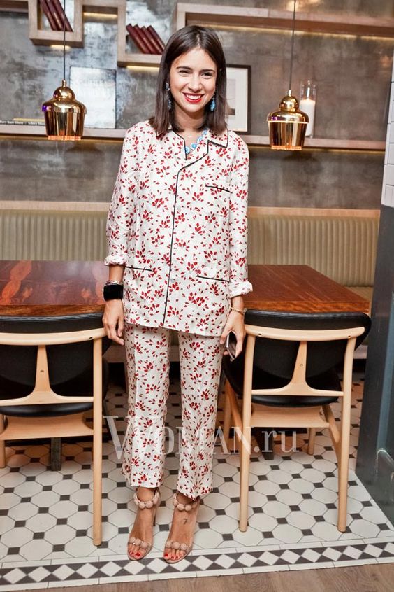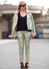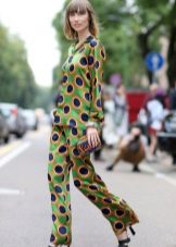 The pajama suit is directly similar to pajamas. Usually it is made of soft flowing fabrics, preference is given to satin and silk. This costume consists of lightweight loose trousers and a jacket type jacket. The colors typical for pajamas - flower, cage, pea, strip are used.