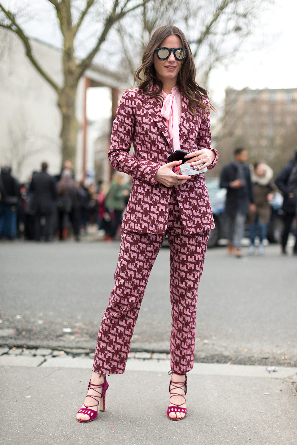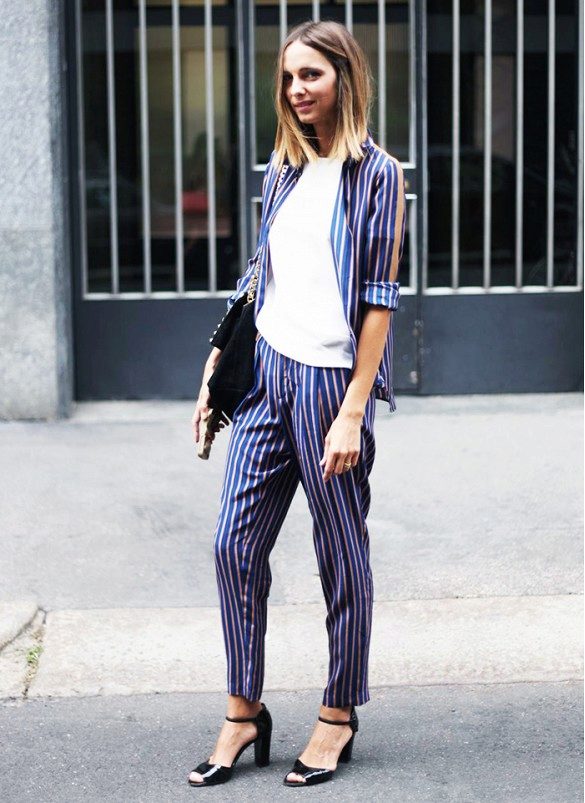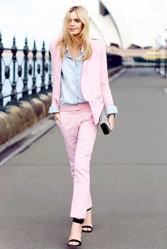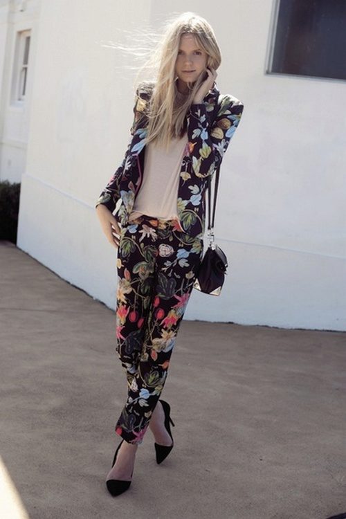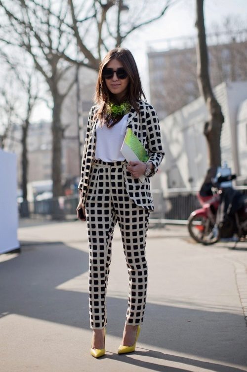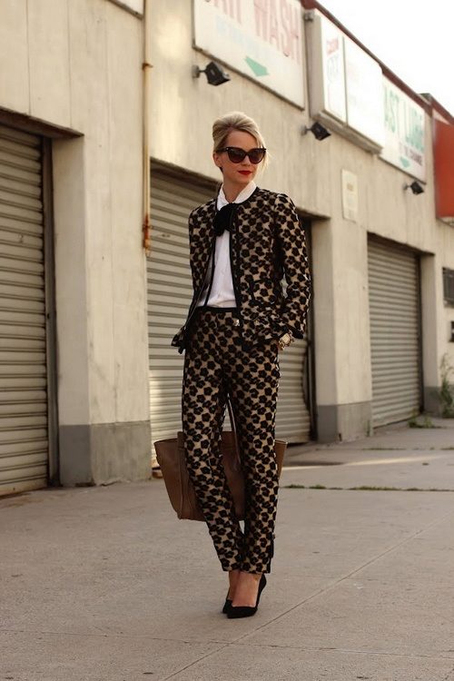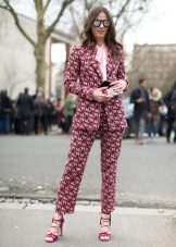 In order not to look in such a suit as if you forgot to change clothes, be sure to wear it with high-heeled shoes and spectacular accessories.
