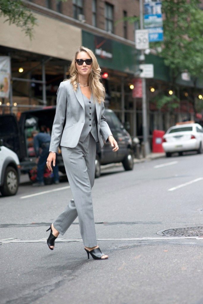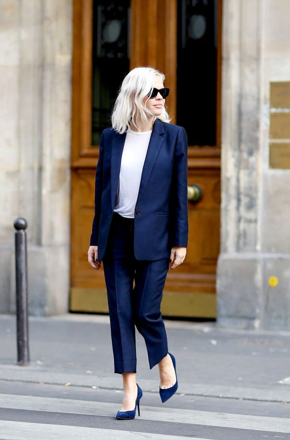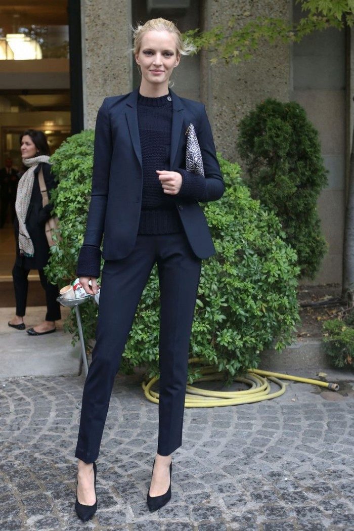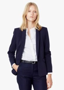 Business suit should be strict and concise, without any frills. Suits with skirts and trousers are allowed, both options are equally relevant. The color scheme is calm, basic. The most popular is dark blue, gray and brown.