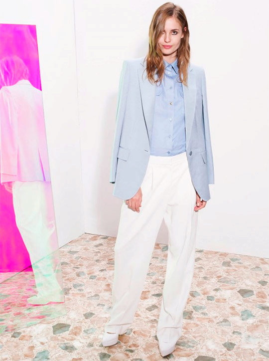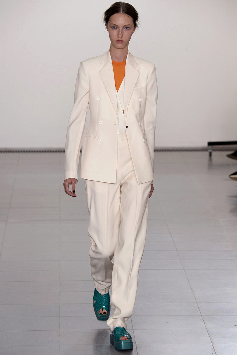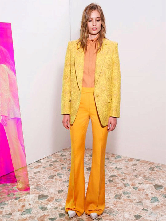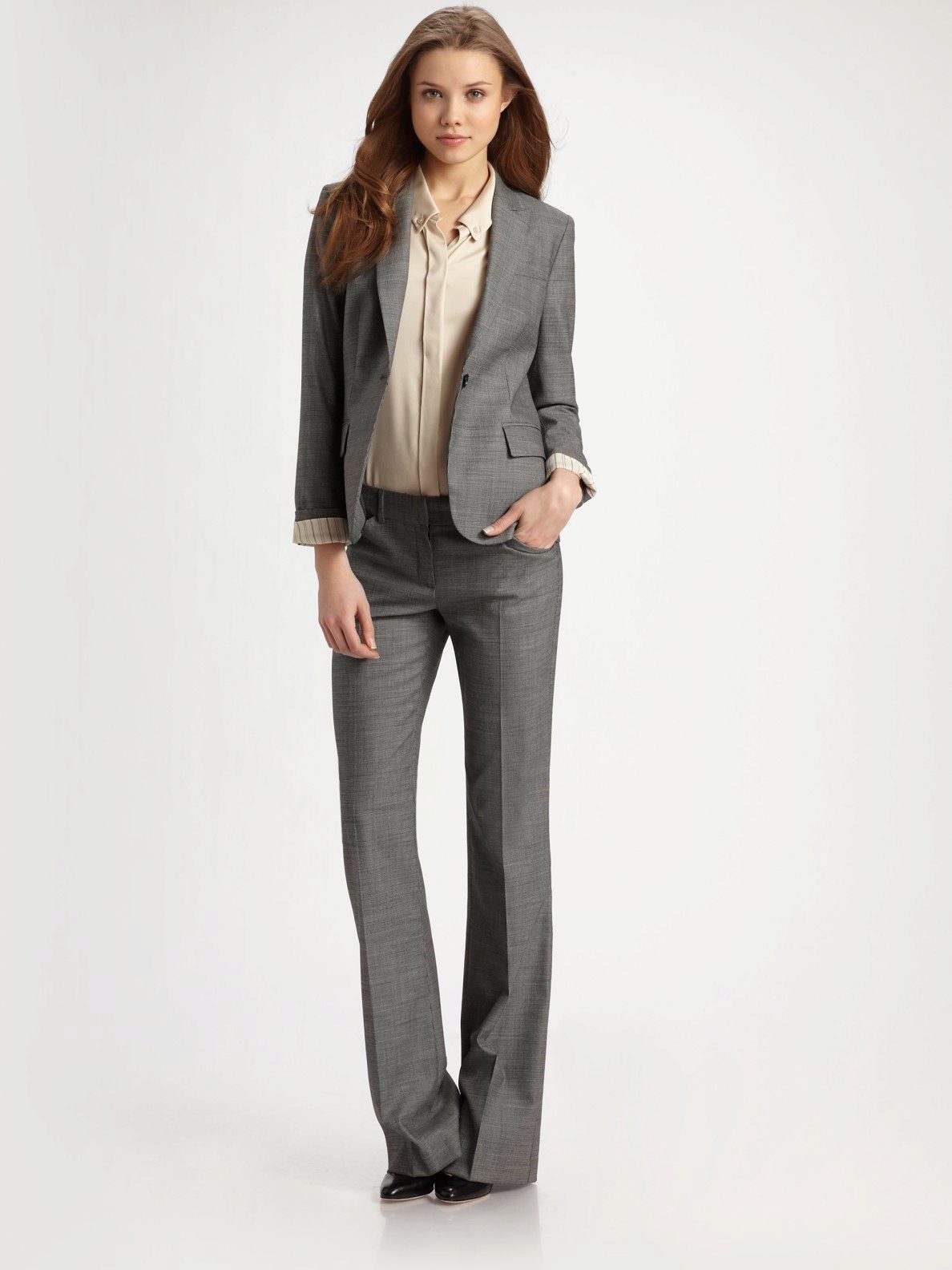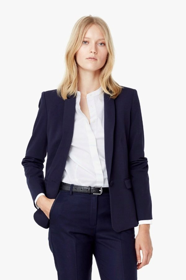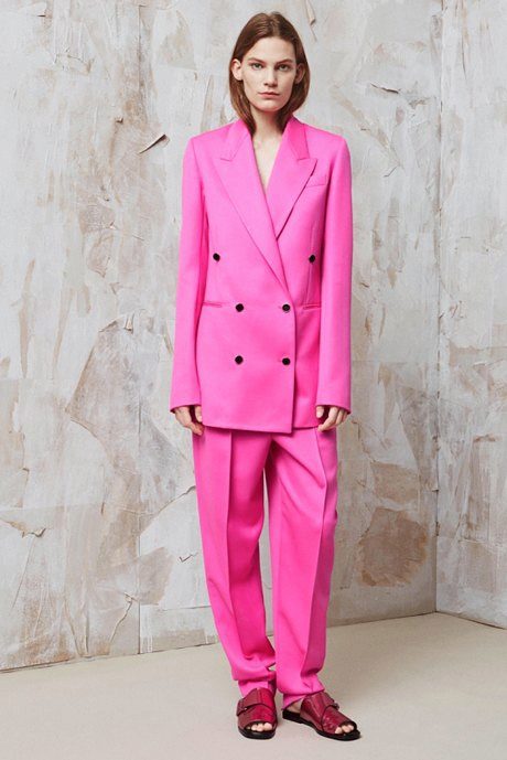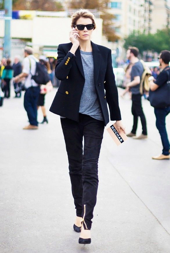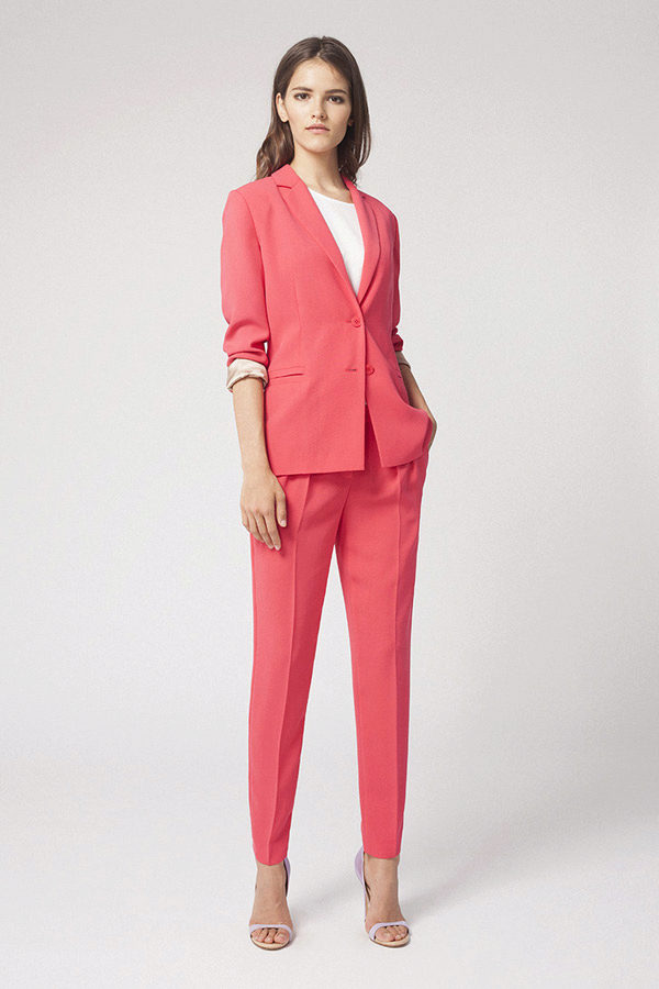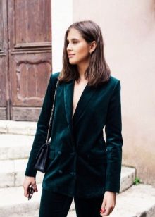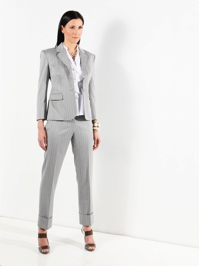 Pay attention to the suits with double-breasted jackets, they are well combined with trousers and skirts. A jacket should emphasize the figure, but not be voluminous or bulky.