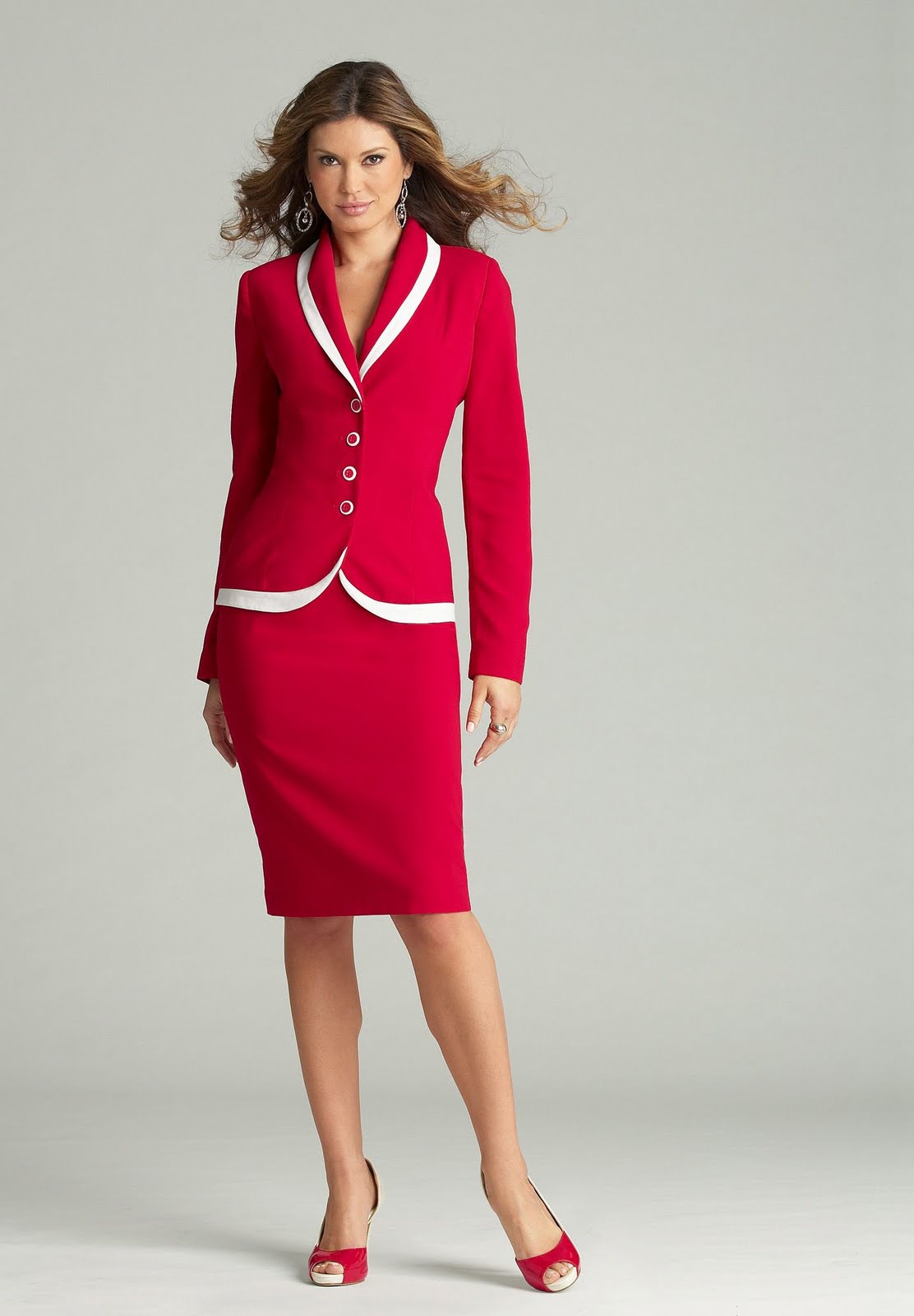 Also there are business suits with a long skirt. Paradoxically, they look best on girls with a good figure. If you are full or short, there is a risk that a long skirt will make the figure heavy and squat.