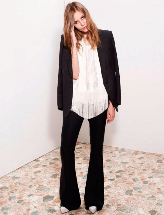 The role of the top does not necessarily have to play a jacket. This may be an elongated top, blouse or tunic. Costumes from bright flowing fabrics look impressive. If you decide to give preference to classic costume materials, choose a product with a beautiful decorative finish. It can be embroidery, fringe, lace, rhinestones. Let yourself look bright and catchy!