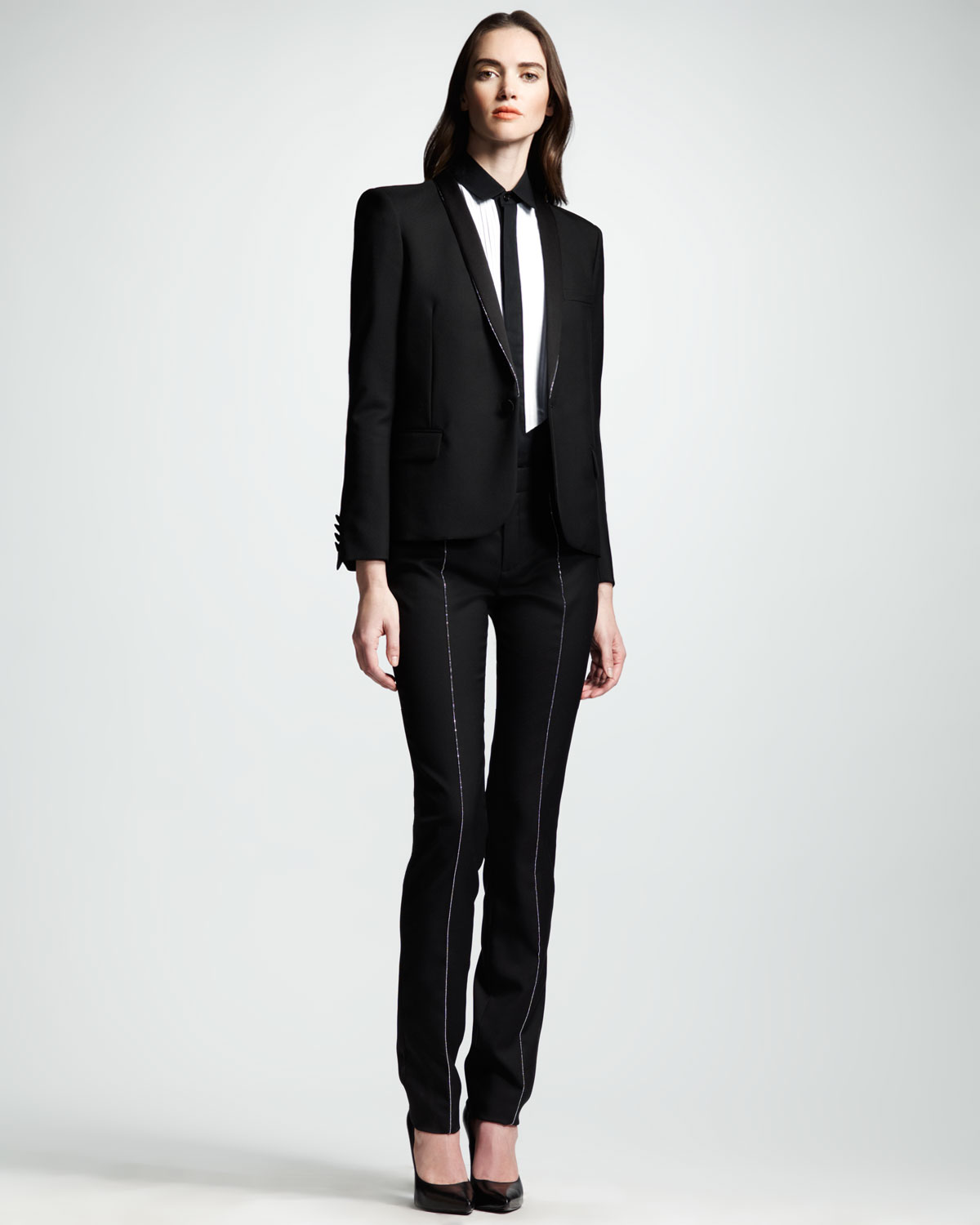 As we have repeatedly said, a trouser or skirt suit can be an excellent alternative to an evening dress.