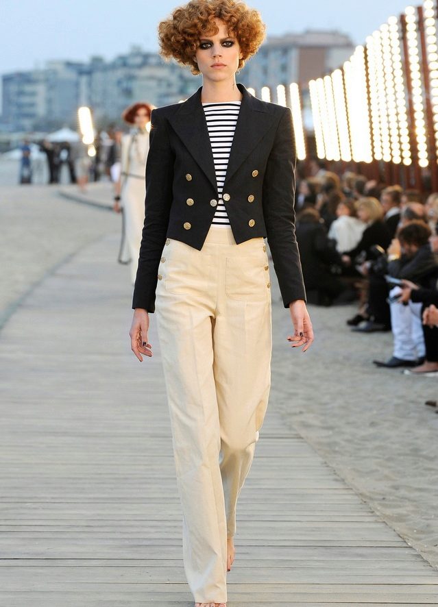 The costume in the nautical style is distinguished by the characteristic colors and striped colors.